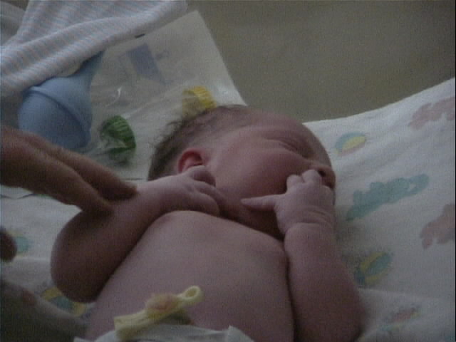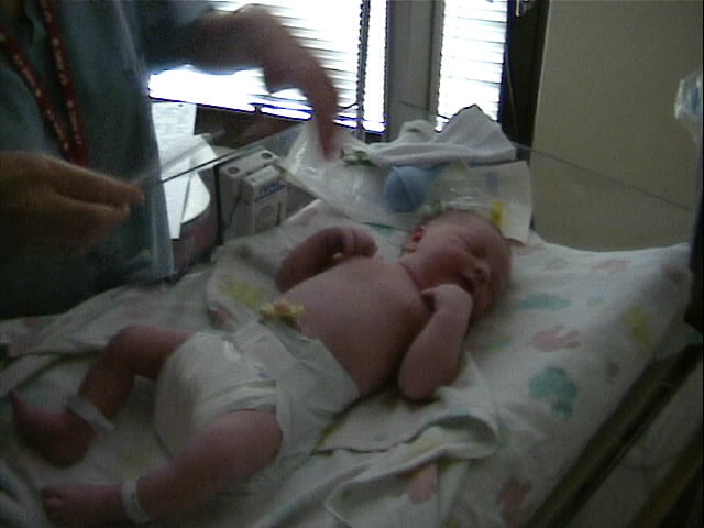 Beth fixing Emma's cap The nurse does her tests "Grandpa - you have a new great granddaughter"